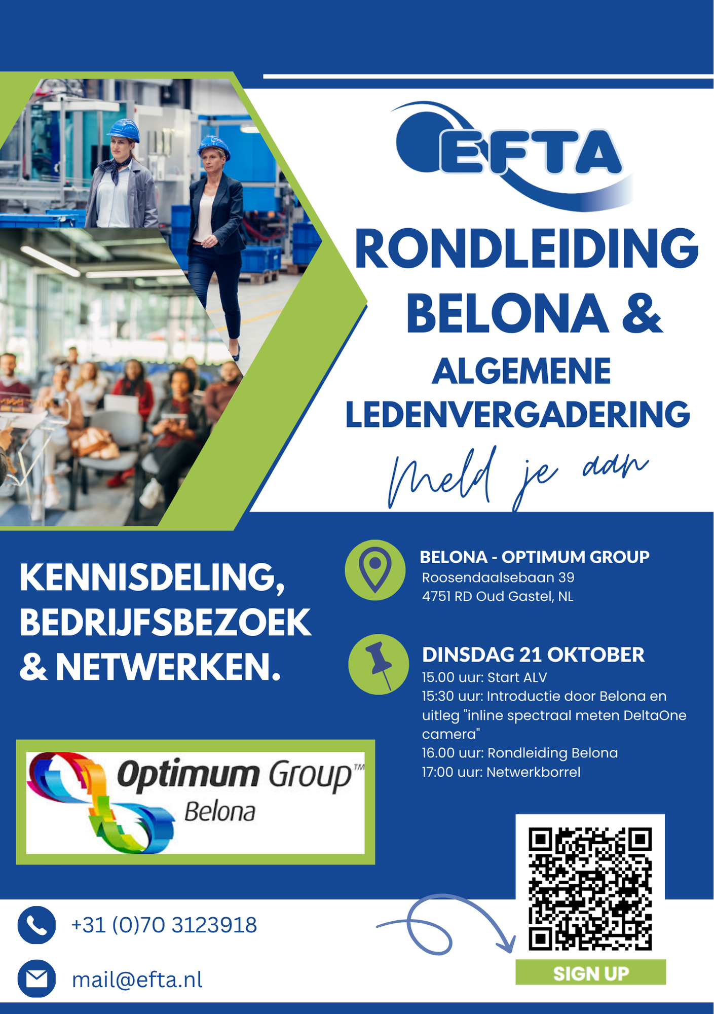 Op dinsdag 21 oktober organiseert EFTA-Benelux een ledenvergadering, gevolgd door een exclusieve rondleiding bij Belona die je absoluut niet wilt missen.